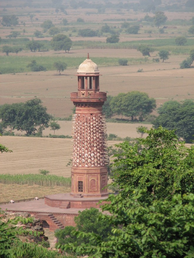 Jahangir had given general orders to fix these deer-like horns on his Kos Minars erected on his road from Delhi to Lahore: he was possibly only duplicating what he had seen as a child in his father’s zero-mile stone which stood at the gate of the palace and near the grand polo grounds on the banks of the lake!