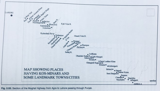 This tradition was later followed by Sher Shah Sur who orders such milestones to be built along the network of roads he laid out. Along these kos minārs were his sarais and dāk chaukīs. This tradition was further carried forward during the next reign. Akbar is recorded to have built kos minars along the road from Agra to Ajmer.