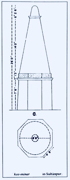 Although these surviving kos minars broadly follow the same design, still some of these have graceful proportions whereas others are somewhat clumsy.