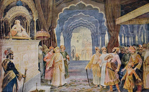 When Shivaji came near Agra, Kunwar Ram Singh son of Jai Singh was directed by the emperor to go out to receive Shivaji at the outskirts of the city. It was just an accident that Ram Singh went to receive by one gate, while Shivaji entered by another. So they missed each other, a fact which Shivaji resented as being a deliberate humiliation. When ultimately Shivaji reached the darbar, he was immediately presented before the emperor. He was ordered to stand in the row of the panj hazari as per the court etiquette of the nobles being organized as per their ranks in the royal presence.